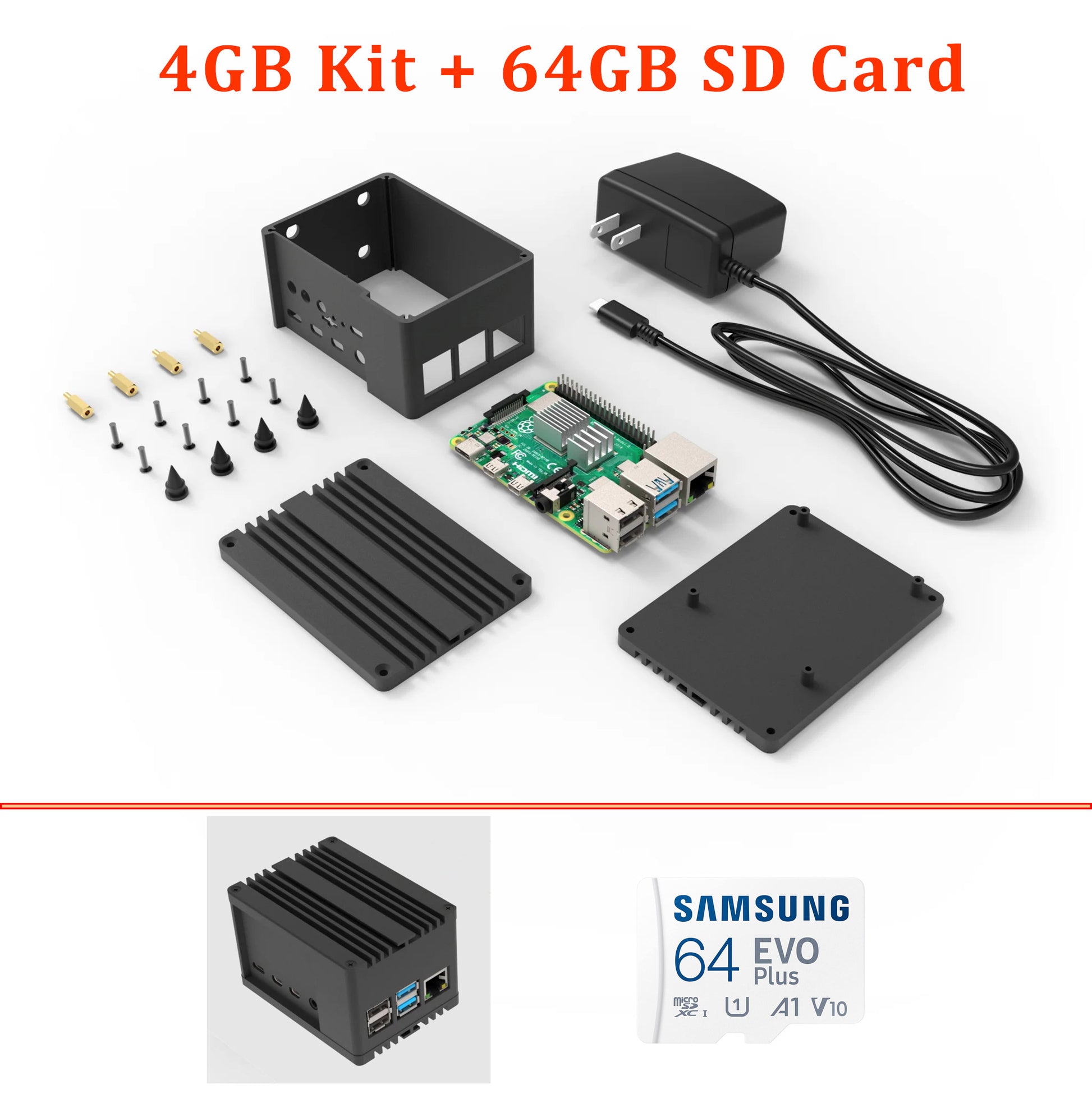 Raspberry Pi 4 4GB Kit - 64GB Card, Aluminum Case